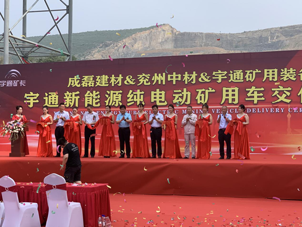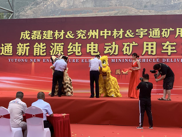 2021年7月17日,成磊建材&兗州中材&宇通礦卡三家企業(yè)代表在成磊建材礦區(qū)舉行隆重的交接儀式,標(biāo)志著兗州中材建設(shè)有限公司礦山開采在踐行“綠水青山就是金山銀山”的發(fā)展理念中邁出堅(jiān)實(shí)一步。 出席本次交接儀式的有:禹州市成磊建材有限公司張景奇總經(jīng)理及宋朝陽常務(wù)副總經(jīng)理,兗州中材建設(shè)有限公司顏景祥副總經(jīng)理及兗州中材河南省內(nèi)各項(xiàng)目尚曉峰、宋道明、沈磊、劉國(guó)榮及陳茂興經(jīng)理,宇通礦用裝備銷售公司馬勇總經(jīng)理及宇通華北分公司劉寶柱總經(jīng)理,以及禹州市成磊建材有限公司、兗州中材建設(shè)有限公司職工代表。 儀式現(xiàn)場(chǎng)彩旗飄飄,人聲鼎沸,場(chǎng)面氣氛熱烈而隆重。首先,宇通礦用裝備銷售公司總經(jīng)理馬勇先生致詞,馬總介紹了宇通客車響應(yīng)國(guó)家政策在新能源礦車領(lǐng)域擁有的先進(jìn)技術(shù)和取得的市場(chǎng)成就,以及對(duì)兗州中材建設(shè)有限公司、禹州市成磊建材有限公司美好明天的祝福。隨后,兗州中材建設(shè)有限公司副總經(jīng)理顏景祥先生上臺(tái)致詞,顏總強(qiáng)調(diào),兗州中材建設(shè)有限公司作為中央企業(yè)是更具有社會(huì)責(zé)任感的企業(yè),兗州中材在謀求發(fā)展的同時(shí)積極貫徹國(guó)家政策,在礦山施工中率先使用新能源設(shè)備,為構(gòu)建“資源節(jié)約型、環(huán)境友好型”社會(huì)做出應(yīng)有的貢獻(xiàn),承擔(dān)央企責(zé)任,擔(dān)負(fù)央企職責(zé)。最后,禹州市成磊建材有限公司總經(jīng)理張景奇先生致詞,張總肯定了兗州中材建設(shè)有限公司在礦山施工中采用更加安全環(huán)保新型設(shè)備的工作,期望兗州中材建設(shè)有限公司依靠過硬的施工技藝、新型的生產(chǎn)設(shè)備、高效的管理模式將禹州市成磊建材有限公司礦山在全省乃至全國(guó)范圍內(nèi)樹立標(biāo)桿,打造成示范性礦山。 致詞完畢,儀式進(jìn)入剪彩環(huán)節(jié),由禹州市成磊建材有限公司張景奇總經(jīng)理、宋朝陽常務(wù)副總經(jīng)理,兗州中材建設(shè)有限公司顏景祥副總經(jīng)理、禹州第四分公司尚曉峰經(jīng)理,宇通礦用裝備銷售公司馬勇總經(jīng)理、宇通華北分公司劉寶柱總經(jīng)理共同上臺(tái)剪彩,隨后,由劉寶柱先生代表宇通公司向兗州中材建設(shè)有限公司顏景祥副總經(jīng)理交付金鑰匙,并對(duì)前來參加儀式的一對(duì)舞獅進(jìn)行點(diǎn)睛,寓意“點(diǎn)石(獅)成金”。 伴隨著臺(tái)上舞獅的激情表演以及空中飄舞的禮花,成磊建材&兗州中材&宇通礦卡交接儀式圓滿結(jié)束。