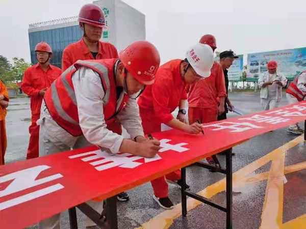 為落實安全責任、推動安全生產(chǎn),嚴格執(zhí)行全國安全生產(chǎn)專項整治三年行動集中攻堅要求,6月1日,馬村分公司于千業(yè)礦山一期卸料平臺舉行2021年“安全生產(chǎn)月”活動啟動儀式暨宣誓、簽字儀式。  2021年6月是我國的第20個“安全生產(chǎn)月”,今年安全月活動的主題是: 落實安全責任 推動安全發(fā)展。我們要深入學習習近平總書記關于安全生產(chǎn)重要論述,全面貫徹落實黨中央、國務院關于安全生產(chǎn)重大決策部署和集團、中材礦山關于安全生產(chǎn)工作要求,以“防風險、除隱患、遏事故”為目標,扎實推進安全生產(chǎn)專項整治三年行動集中攻堅。利用“安全生產(chǎn)月”的活動這一契機,通過開展安全生產(chǎn)事故警示教育、安全生產(chǎn)應急救援演練、安全教育培訓、張貼安全宣傳標語等活動,增強全員安全意識,提升員工安全素質(zhì),確保公司安全生產(chǎn)形勢持續(xù)穩(wěn)定。 此次活動進一步提高各崗位人員對安全工作重要性、艱巨性和長期性的認識,通過安全月的學習,認真做好當前和今后的安全生產(chǎn)工作。充分發(fā)揮現(xiàn)場管理人員的監(jiān)管作用,強化各項安全措施的貫徹落實,及時消除隱患,全面提高安全生產(chǎn)條件,保證分公司安全生產(chǎn)形勢持續(xù)穩(wěn)定。