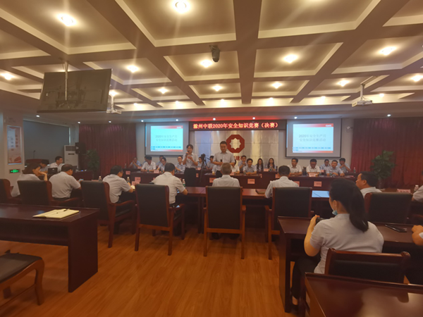 為進(jìn)一步鞏固“安全生產(chǎn)月”成果,加強(qiáng)安全文化建設(shè)和安全生產(chǎn)宣傳教育,提高全員安全意識(shí),營(yíng)造良好的安全生產(chǎn)氛圍,提升安全素養(yǎng),6月24日上午9時(shí)30分,滁州中聯(lián)在安全知識(shí)競(jìng)賽初賽的基礎(chǔ)上舉辦了2020年安全知識(shí)競(jìng)賽決賽。滁州分公司代表的礦山部以初賽第一名的成績(jī)?nèi)雵敬螞Q賽。 比賽共有三輪,分為必答題、搶答題和看圖題,每隊(duì)的基礎(chǔ)分為100分,現(xiàn)場(chǎng)采用搶答器搶答。在比賽過(guò)程中,七支隊(duì)伍比分此消彼長(zhǎng),互不相讓,尤其在搶答環(huán)節(jié)競(jìng)爭(zhēng)更為激烈,一度將競(jìng)賽氣氛推向高潮。經(jīng)過(guò)一個(gè)半小時(shí)的角逐,各隊(duì)比分逐漸拉開(kāi)差距,最終,滁州分公司代表的礦山部獲得第二名的好成績(jī),滁州中聯(lián)行政人事部和物資供應(yīng)部分別獲得第一名、第三名的好成績(jī)。