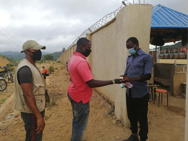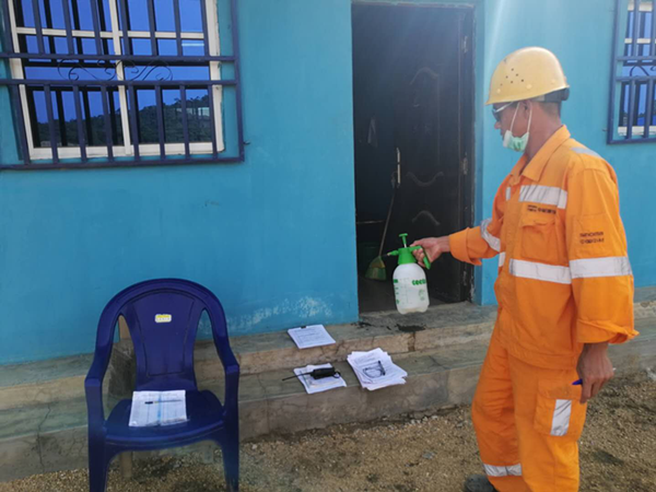 自新型冠狀病毒肺炎疫情發(fā)生以來,尼日利亞項目部領導按照公司統(tǒng)一安排,高度重視疫情防控工作,加強領導,根據(jù)當?shù)匾咔樾蝿荩沿熑慰乖诩缟?,抓在手中,采取有力措施,確保疫情防控和生產工作順利進行。堅持每天督查安全,督促生產;實時通報國內疫情防控情況,及時了解尼日利亞的疫情動態(tài),加強疫情防范措施的宣傳,堅持涉外無小事原則,積極傳播正能量。同時,密切關注職工思想動態(tài),解決職工實際困難,穩(wěn)定隊伍保證生產;項目部想盡各種方法聯(lián)系購買渠道購買防護口罩、消毒液、免洗手消毒液醫(yī)用酒精等,對宿舍,辦公室,工作場所等進行定期消毒。食堂增加每日的肉品供應量,增強職工的免疫力。營地大門口實行封閉式管理。多項舉措做好疫情防控和隊伍穩(wěn)定工作;同時項目部制定和完善各項應急預案,根據(jù)疫情的發(fā)展情況,適時啟動應急預案,做出相關決策。 主要措施: 1、項目部對外部進場人員實行嚴格準入制度,對符合疫情防控要求的人員準予進入工地。 2、對工地內工作人員(包括當?shù)貑T工),建立健康監(jiān)測制度,每天兩次對全部人員進行體溫測量和登記,發(fā)現(xiàn)發(fā)熱特別是伴有咳嗽、咽喉腫痛等狀況身體異常人員,立即采取隔離、送醫(yī)等應急處置措施。  當?shù)貑T工進場前體溫檢測  當?shù)貑T工洗手液消毒 3、做好宣傳教育工作,派發(fā)資料及宣傳疫情防控知識,加強個人衛(wèi)生教育。  新冠疫情知識宣傳教育   4、對配送材料、物資等外來人員,不得車輛進場后,車上人員出駕駛室,貨物、物資有項目部安排工地內人員接受和裝卸,并做好安全防護措施。  對外來材料及車輛消殺 5、做好防范措施,車間、礦區(qū)配備測溫槍、消毒液、口罩等應急防范物品,保持宿舍空氣流通,落實衛(wèi)生消毒制度,切實做好施工現(xiàn)場衛(wèi)生管理、個人衛(wèi)生防護,及時開展的病媒生物防治與消殺,有效降低病媒生物密度。  接送員工上下班車輛消毒  對考勤等記錄消毒  對現(xiàn)場工棚消殺 防疫物資儲備  生活物資儲備 6、安排專人實施24小時值班和項目部領導帶班,并保持通信通暢。 7、實行日報告和零報告制度,做到早發(fā)現(xiàn)、早報告、早隔離、早治療,分層隔離,及時落實。 |