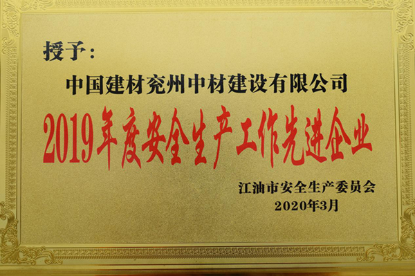2020年4月3日,在江油市安全生產(chǎn)委員會(huì)組織召開(kāi)的關(guān)于安全生產(chǎn)工作會(huì)議上,兗州中材建設(shè)有限公司江油分公司被評(píng)為“2019年度安全生產(chǎn)工作先進(jìn)企業(yè)”稱(chēng)號(hào)。 2019年江油分公司認(rèn)真貫徹政府相關(guān)部門(mén)及上級(jí)有關(guān)安全文件精神和指示,嚴(yán)格落實(shí)公司安全部相關(guān)制度及要求,切實(shí)強(qiáng)化紅線意識(shí),建立以及完善安全生產(chǎn)責(zé)任體系和各類(lèi)安全規(guī)章制度及操作規(guī)程,確保責(zé)任逐級(jí)落實(shí);通過(guò)集中學(xué)習(xí)、網(wǎng)絡(luò)宣傳、現(xiàn)場(chǎng)宣貫等多種方式精心組織“安全生產(chǎn)月”及各項(xiàng)“安全生產(chǎn)應(yīng)急演練”等活動(dòng),積極營(yíng)造“上下重視,全員參與”的安全氛圍。2019年,江油分公司多次積極迎接并配合省、市、區(qū)等相關(guān)單位進(jìn)行安全生產(chǎn)檢查并得到了高度評(píng)價(jià),被當(dāng)?shù)卣u(píng)為安全生產(chǎn)標(biāo)桿企業(yè),提高了企業(yè)的知名度,全面完成了2019年度安全生產(chǎn)目標(biāo)任務(wù)。