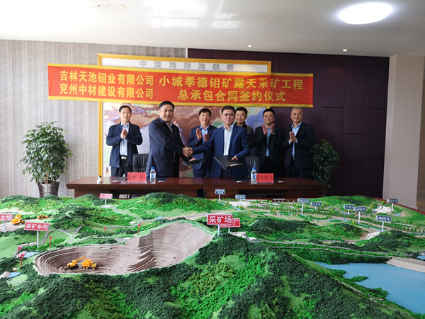 20195288時(shí)58分,吉林舒蘭小城季德鉬礦露天采礦工程總承包合同簽約儀式在吉林天池鉬業(yè)有限公司舉行。參加簽約儀式的還有舒蘭市副市長(zhǎng)明繼國、吉林天池鉬業(yè)和兗州中材相關(guān)負(fù)責(zé)人等。