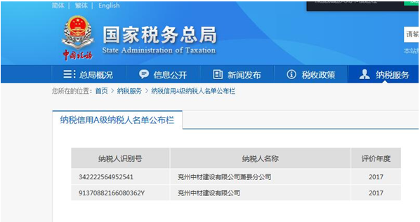近日,稅務(wù)機(jī)關(guān)組織實(shí)施的2017年度納稅信用等級評定結(jié)果“出爐”,兗州中材建設(shè)有限公司繼2015、2016年度榮獲A級納稅信用企業(yè)后,再次榮獲A級納稅信用企業(yè)。