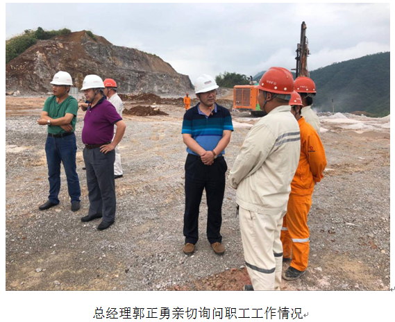 檢查過(guò)程中,郭正勇總經(jīng)理關(guān)切地詢問(wèn)了現(xiàn)場(chǎng)員工,問(wèn)道:工作中遇到過(guò)什么問(wèn)題?對(duì)公司的現(xiàn)場(chǎng)施工管理有什么要求?在現(xiàn)場(chǎng)工作中學(xué)到那些關(guān)鍵技術(shù)知識(shí)?等等,熱切鼓勵(lì)年輕員工要不忘初心,擼起袖子加油干,牢記使命,攜手共創(chuàng)公司美好的明天。要始終堅(jiān)持“干一項(xiàng)工程、樹(shù)一塊牌子、交一批朋友、贏一方信譽(yù)”的經(jīng)營(yíng)理念,堅(jiān)持“安全礦山、綠色礦山、顧客至上、跟蹤服務(wù)”的服務(wù)理念,打造出中材礦山一流的企業(yè)品牌。