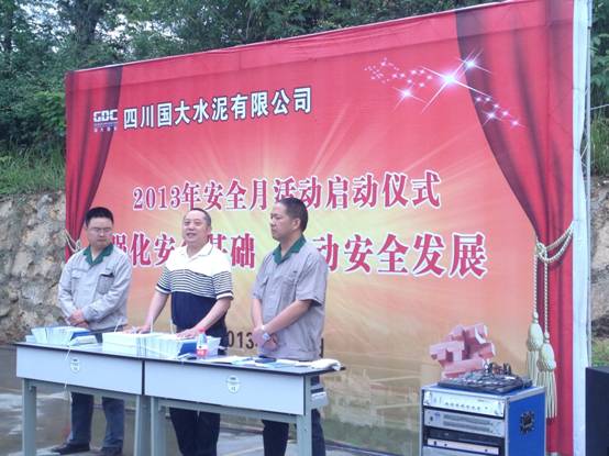 四川國(guó)大水泥舉行安全月啟動(dòng)儀式 6月1日,四川國(guó)大水泥有限公司舉行了以“強(qiáng)化安全基礎(chǔ),推動(dòng)安全發(fā)展”為主題的安全月啟動(dòng)儀式。江油市含增鎮(zhèn)安辦主任唐開(kāi)文到會(huì)并講話。會(huì)議由國(guó)大副總鐘義主持,兗州中材國(guó)大礦山的全體員工也應(yīng)邀參加。 唐開(kāi)文在講話中回顧了過(guò)去幾年國(guó)大水泥對(duì)安全生產(chǎn)作出的巨大貢獻(xiàn),他還表示,礦山現(xiàn)場(chǎng)的安全工作已成為江油市乃至綿陽(yáng)市的一個(gè)安全示范亮點(diǎn),這與兗州中材的積極努力也是密不可分。國(guó)大安全經(jīng)理余德權(quán)在對(duì)安全生產(chǎn)諸方面作出重要指示后,也針對(duì)礦山安全施工提出更高的要求,希望兗州中材能將良好的安全工作習(xí)慣保持下去。會(huì)上,給全體員工發(fā)放了安全手冊(cè)。每位員工在安全月宣傳墻上簽名,這將會(huì)議推上了一個(gè)高潮。會(huì)后,員工們均表示:通過(guò)此次啟動(dòng)儀式,使得安全工作更加深入人心。對(duì)于安全生產(chǎn)的重視,時(shí)刻不敢松懈! 杜國(guó)賓