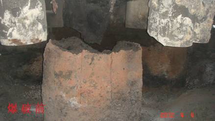 兗州中材建設(shè)有限公司云維項目部 實施石墨電極分解爆破 4月4日,應(yīng)云維乙炔化工有限公司(業(yè)主)要求,我項目部對其廠區(qū)1#電石爐內(nèi)石墨電極成功實施分解爆破。 本次爆破點位于業(yè)主電石車間二層電石爐內(nèi),技術(shù)人員和安全員經(jīng)現(xiàn)場勘查發(fā)現(xiàn):石墨電極為直徑1.2m、高約1.5m的圓柱狀石墨體,從中心呈輻射狀均勻分布12塊約1cm厚鋼板。三個電極呈“品”字狀分布在一個直徑約7~8米的幾乎密閉的鋼制反應(yīng)爐內(nèi)(有洞口)。爆前充分勘察了爆區(qū)周圍的實際情況,結(jié)合從網(wǎng)絡(luò)上搜集的對石墨電極的性能分析和以往的爆破經(jīng)驗,選用合適的爆破器材,擬定了幾種爆破方案。充分分析爆破方案的可行性后,選擇其中可行性較高的兩種方案進(jìn)行了試爆,結(jié)合兩次試爆效果,經(jīng)調(diào)整爆破參數(shù)后,最終成功拆除。 本次爆破對僅隔約10米遠(yuǎn)、正在生產(chǎn)的2#爐和庫房未產(chǎn)生任何影響。 這次爆破工作雖小,但我們本著謹(jǐn)慎、科學(xué)的態(tài)度對待。從爆破參數(shù)的選擇到安全警戒都認(rèn)真小心,取得了預(yù)想的效果。 通過這次爆破,積累了對巖石以外材料的爆破經(jīng)驗,也增加了我項目部尤其是年輕人工作技能。也到了業(yè)主的認(rèn)可。 孟永旺