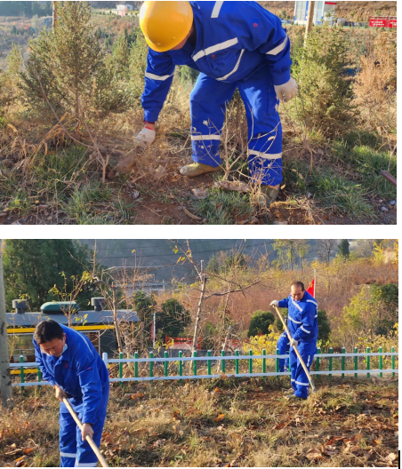 白坪分公司在3天內(nèi)對所屬區(qū)域的雜草、垃圾等進行集中清理。大家用割草機、鐮刀、剪刀等清理綠化帶、草坪上的雜草,用塑料袋袋、編織袋撿拾運礦道路、生產(chǎn)區(qū)域、邊坡、路旁垃圾,對排水渠、洗車機等仔細清理;對項目部生活區(qū)荒地重新開墾復墾,全體人員熱情高漲,干勁十足,分工協(xié)作,配合默契,全然不顧天氣寒冷。