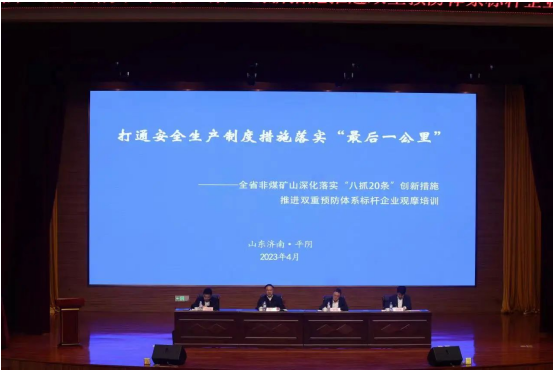4月27日,由山東省應(yīng)急管理廳組織的“全省非煤礦山深化落實“八抓20條”創(chuàng)新措施推進雙重預(yù)防體系標(biāo)桿企業(yè)觀摩培訓(xùn)會在平陰召開。