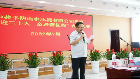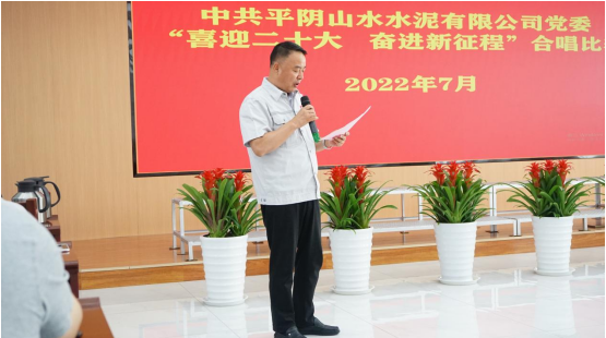 今年是偉大的中國共產(chǎn)黨建黨101周年華誕,為慶祝黨的百年華誕中共平陰山水水泥有限公司黨委組織開展“喜迎二十大 奮斗新征程”合唱比賽。 7月8日下午15:30分,隨著歡快的《迎賓進(jìn)行曲》的響起,參加合唱比賽的12位評委和5支代表隊(duì)依次進(jìn)場。 本次比賽共分為:行政銷售支部代表隊(duì)、塑編支部代表隊(duì)、生產(chǎn)一支部代表隊(duì)、生產(chǎn)二支部代表隊(duì)和兗州中材平陰分公司與礦管辦代表隊(duì)。 15:50分活動(dòng)正式開始,平陰山水黨委書記侯福存發(fā)表主旨講話:今年是建黨101周年。100多年來,我黨團(tuán)結(jié)帶領(lǐng)全國各族人民自強(qiáng)不息、拼搏進(jìn)取,戰(zhàn)勝艱難險(xiǎn)阻,取得了舉世矚目的輝煌成就,帶領(lǐng)我們昂首闊步邁向偉大復(fù)興。今天,我們隆重集會(huì),用歌聲頌揚(yáng)黨的光輝歷史,緬懷黨的豐功偉績,向黨的101歲華誕獻(xiàn)禮,向黨的二十大獻(xiàn)禮。公司黨委舉辦本次合唱大賽,既是豐富黨建工作形式、促進(jìn)黨建和公司中心工作高度融合的重要舉措,也希望通過比賽,進(jìn)一步增強(qiáng)黨群、干群凝聚力和向心力,激勵(lì)全體干部職工堅(jiān)定信念、迎難而上,在“百日趕超”勞動(dòng)競賽中繼續(xù)立足崗位、攻堅(jiān)克難,全力沖刺“大趕超”任務(wù)目標(biāo),為公司項(xiàng)目建設(shè)和高質(zhì)量發(fā)展貢獻(xiàn)更大力量。 最后,侯書記宣布合唱比賽開始。