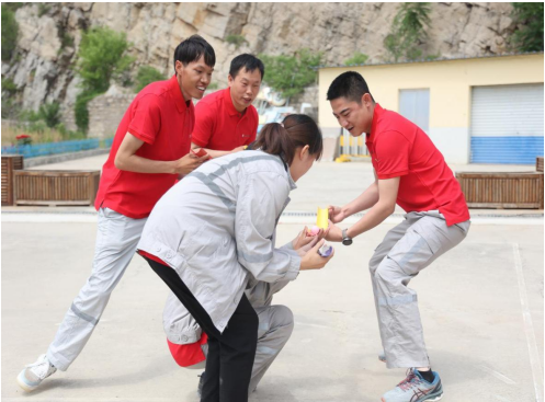 參觀施工現(xiàn)場結(jié)束后,共建團(tuán)體開展了背靠背雙人運氣球和接力運球等生動活潑的趣味活動。賽場上,大家積極參與,氣氛非?;钴S,大家賽出了水平,賽出了風(fēng)格,賽出了友誼,以更加飽滿的熱情和昂揚向上的精神風(fēng)貌投身到工作中去。比賽結(jié)束后,侯相欽為參賽人員發(fā)放了獎品并合影留念。