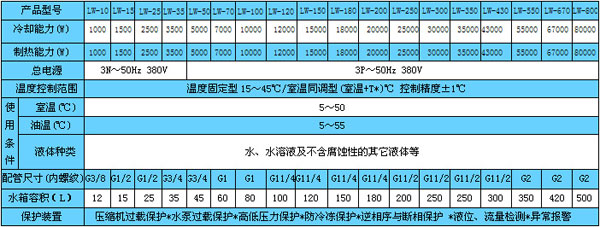 7、機(jī)種齊全:(1)具有冷熱兩用機(jī)型,水溫低于10℃時開始加熱,達(dá)到13℃時停止加熱。(2)具有溫度固定型和室溫同調(diào)型兩種控制方式(同一控制面板可調(diào)節(jié)轉(zhuǎn)換),以滿足不同機(jī)床的要求。