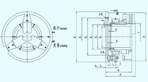 ※h1為主軸前端配置卡盤(pán)尺寸。
