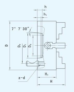 ※根據(jù)用戶需求,還可提供配帶分離爪(滑座和頂爪連接尺寸符合ISO3442)的四爪單動(dòng)卡盤,型號(hào)為K72A口/口、 K72D口/口、 K72E口/口。