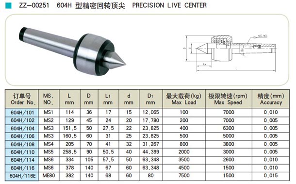 ZZ-00251-604H-型精密回轉(zhuǎn)頂尖