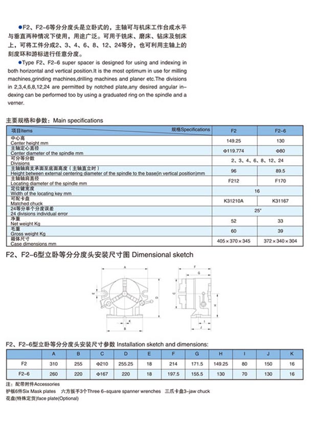 F2-F2-6型立臥等分分度頭