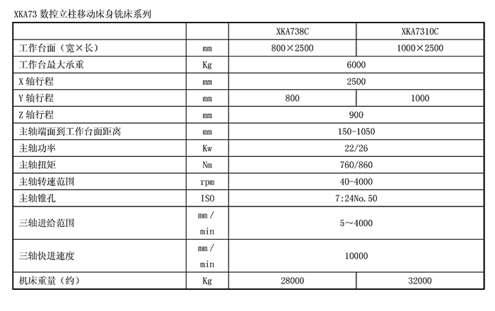 本機床是立柱移動型數(shù)控銑床。機床配有FANUC 0I-MD、西門子 828D數(shù)控系統(tǒng)與相應(yīng)的交流主軸電機、交流伺服電機并有德國(HEIDENHAIN)的光柵尺組成的全閉環(huán)伺服系統(tǒng)。機床的加工精度高。(機床的定位精度與重復(fù)定位精度高)加工零件的一致性好,機床的結(jié)構(gòu)設(shè)計合理,有足夠的靜態(tài)、動態(tài)、熱態(tài)剛度,并采用先進技術(shù),保證系統(tǒng)具有良好的動態(tài)品質(zhì),所選伺服驅(qū)動系統(tǒng)執(zhí)行元件精度高,可靠性好,響應(yīng)速度快,機床的使用、操作、維修方便。造型美觀大方。該機床可以進行三坐標(biāo)三聯(lián)動,還具有刀具半徑補償、編輯、自診斷等功能。機床的主要基礎(chǔ)鑄件均采用密筋格、樹脂砂造型、高強度鑄鐵鑄造。機床具有的剛性強、抗彎、抗扭的剛度高。機床的三個方向采用了滾動、滑動復(fù)合導(dǎo)軌副。使機床具有高靈敏度、抗震性也好。鑒于機床本身的特點,該機床特別適用于各類大、中型精密復(fù)雜的模具等黑色、有色金屬材料的加工。